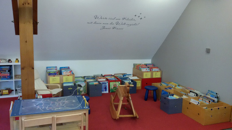 Das Bücherangebot der Bücherei umfasst alle Bereiche von Bilderbüchern für die Kleinsten über lustige oder spannende Unterhaltung für Kinder, Jugendliche und Erwachsene, bis hin zu interessanter Sachliteratur. Durch regelmäßige Neuanschaffungen aktueller Bücher bietet die Bücherei einen aktuellen und modernen Buchbestand an.