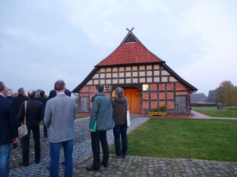 Bevor die LAG mit ihrer normalen Tagesordnung begann, verschafften sich die Mitglieder bei ei-nem Rundgang einen Eindruck über das Gelände des Kulturgut Ehmken Hoffs. Herr Dr. Böcker, Vorsitzender des Stiftungsrates der H.F. Wiebe Stiftung Dörverden, gab einen interessanten Einblick in das Ensemble, bestehend aus insgesamt drei historischen Fachwerkhäusern, deren Aufbau bereits in der vergangenen Förderperiode zum Teil mit LEADER-Mitteln unterstützt wurde.