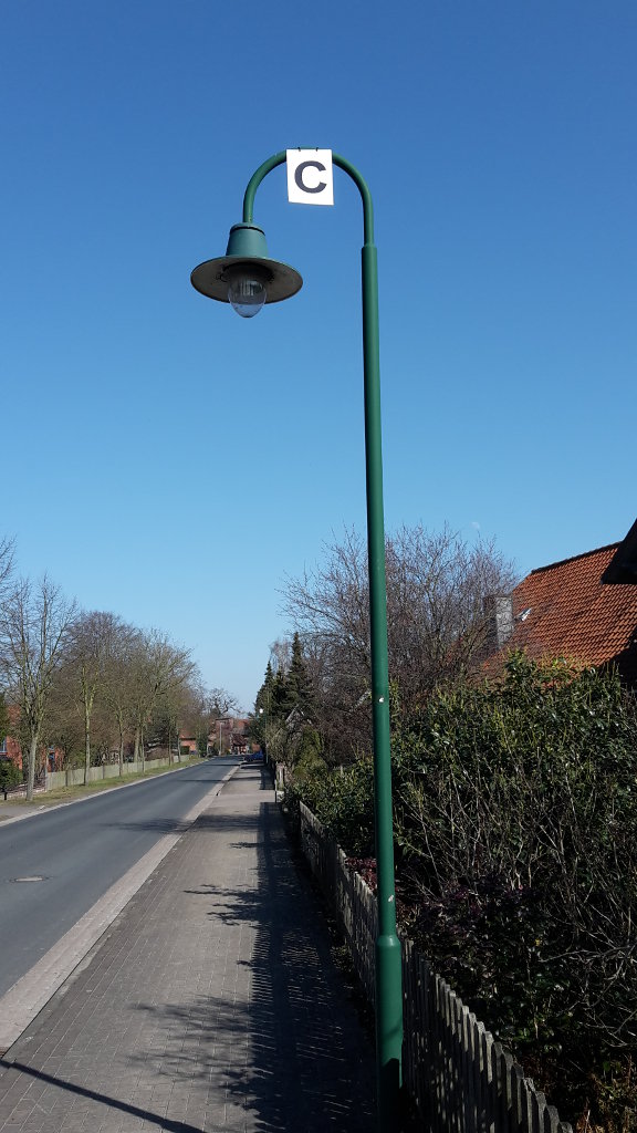 Jetzt sind die Bürger an der Reihe: "Welches Licht gefällt am besten?", fragt das Rathaus die Bürger Die Laternen wurden mit A, B und C gekennzeichnet, so dass eine Zuordnung leicht möglich ist.