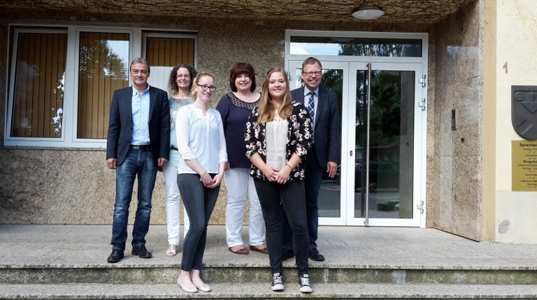 v.l. Leslie Buchholz und Caroline Lorenz Martin Geisel, Heike Albrecht, Kerstin Voltmer und Björn Gehrs