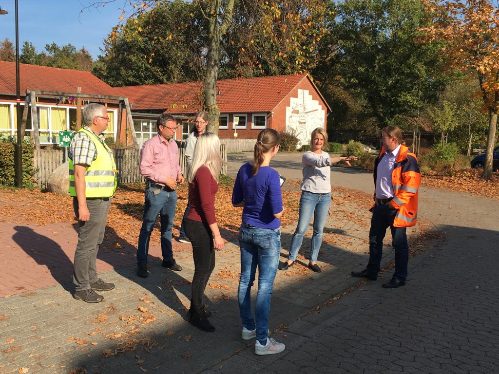 Zum Foto: Vor Ort Besichtigung zum Thema Schulwegsicherheit. Die Ergebnisse werden am Mittwoch (21.11) um 20 Uhr im Uhle Hof der Öffentlichkeit vorgestellt.