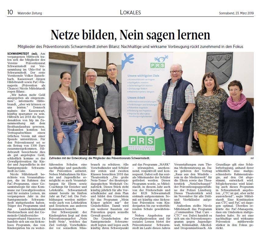 PaC: Mitglieder des Präventionsrats Schwarmstedt ziehen Bilanz: Nachhaltige und wirksame Vorbeugung rückt zunehmend in den Fokus