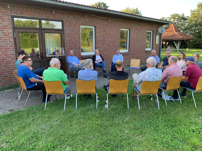 In einem lebhaften Austausch ging es um gemeindliche Themen, wie Verkehrsbelastungen für Essel und Engehausen, die durch die Sperrung der B214 und Umleitungsverkehre derzeit noch verstärkt werden. Über den Stand des Baus des Feuerwehrhauses, bei dem die Innenarbeiten gut vorangehen und das Gebäude bald fertig gestellt ist. Über das Ergebnis der Wegebegehung bei dem der Esseler Rat gemeinsam mit Bürgerinnen und Bürgern Straßen in Essel und im Ostenholzer Moor besichtigt und Maßnahmen beraten haben. Über fehlende Fußballtore im Esseler Ortskern für spielende Kinder und Jugendliche. Über die Schaffung von neuem Wohnraum – auch für Mieterinnen und Mieter zu bezahlbaren Preisen, wobei der private Investor sein Projekt aus erster Hand vorstellte und sich bei Rat und Verwaltung für die große Unterstützung und schnelle Entscheidungen bedankt hat, die das Bauvorhaben gut vorangebracht haben. Die Anwesenden waren sich einig, dass der Esseler Bürgerdialog eine gute Gelegenheit ist, um Informationen aus erster Hand zu erhalten und einen Austausch auf Augenhöhe zu ermöglichen, so dass Bernd Block und Björn Gehrs eine Fortsetzung in Aussicht stellen.