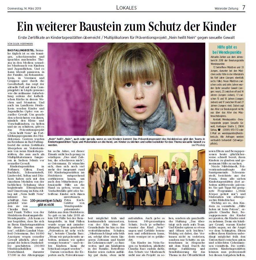Erste Zertifikate an Kindertagesstätten überreicht / Multiplikatoren für Präventionsprojekt "Nein heißt Nein" gegen Sexuelle Gewalt